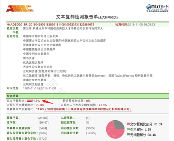 论文降重:意思不变,内容结构不变,专业名词不变,字数不减少,语句通顺,只改变表述, 终降低重复率。 我们随机选取两个降重案例展示:一篇中文硕论降重知网 71.6% 降低到知网 11.8% ,一篇医学论文维普 72.35% 降低到维普 7.36% 。